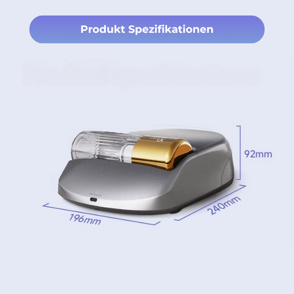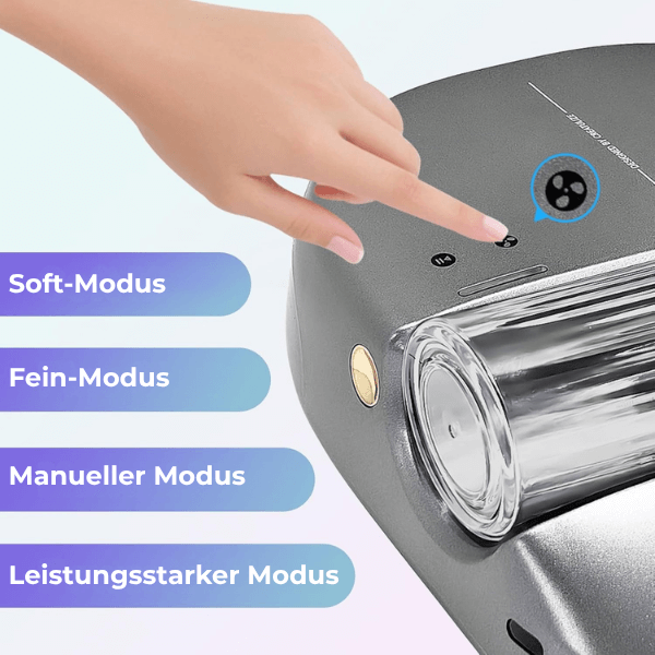 - Arbeitsprinzip: Hochfrequente Schlagbürste + starke Absaugung + UV-Sterilisation
