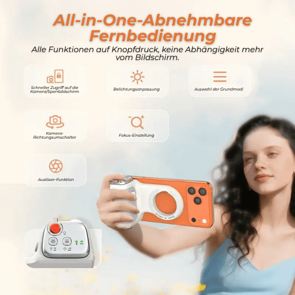 Fotro verwandelt dein iPhone in eine echte Kamera – mit haptischem Auslöser, Zoomrad, Moduswahl und magnetischem Grip für stabile, gestochen scharfe Fotos. Per Knopfdruck startest du die Kamera sofort, wechselst zwischen Front- und Rückkamera, passt die Belichtung an und zoomst butterweich rein oder raus. Das abnehmbare Bedienfeld dient zusätzlich als Fernsteuerung für Selfies, Gruppenfotos oder Videos. Kompakt, ergonomisch und immer griffbereit – Fotro macht Smartphone-Fotografie schneller, intuitiver und professioneller.