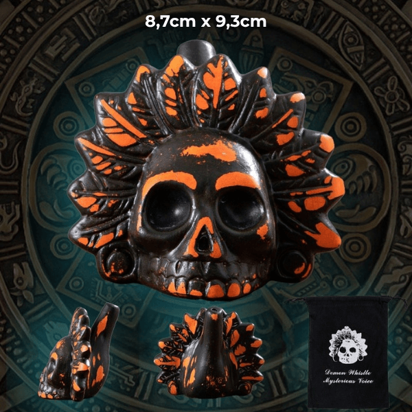 In alten Zeiten nutzten die Krieger der Azteken diese Pfeifen, um Feinde in Angst und Schrecken zu versetzen. Ihr Klang glich dem Schrei der verlorenen Seelen – ein Symbol für Macht, Mut und den Übergang zwischen Leben und Tod. Heute kannst du diese uralte Energie wiedererwecken – in deinem Wohnzimmer, auf deiner Halloween-Party oder als eindrucksvolle Dekoration, die Geschichten erzählt.