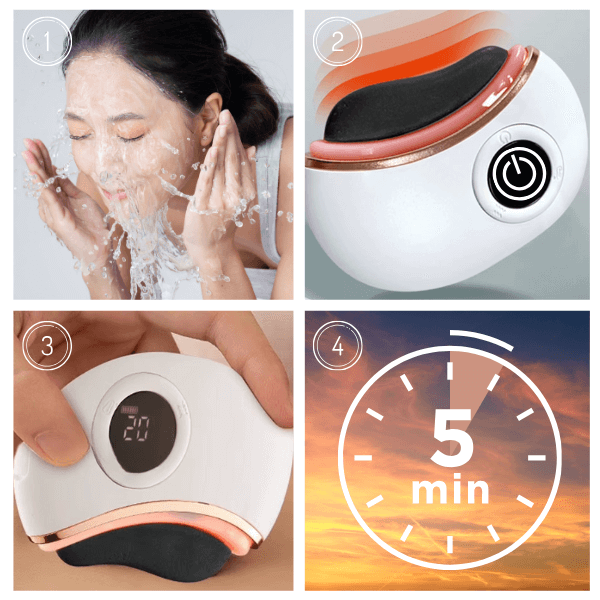 Erlebe die Kraft fernöstlicher Schönheit neu – mit MeiLuna, dem elektrischen Gua Sha Massagegerät für strahlende, glatte und entspannte Haut. Dank 9 Vibrations- und Wärmestufen (40–55 °C) fördert MeiLuna die Durchblutung, aktiviert den Lymphfluss und reduziert Schwellungen sichtbar. Die Kombination aus sanfter Tiefenwärme, mikrovibrierender Massage und glattem Bian-Stein hilft deiner Haut, Pflegeprodukte bis zu 3x besser aufzunehmen.