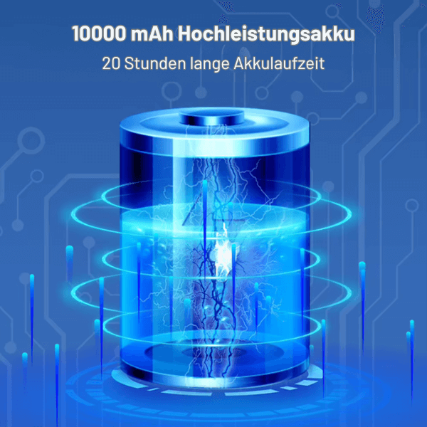 - Batteriekapazität 5000 mAh, Laufzeit 5–8 Stunden