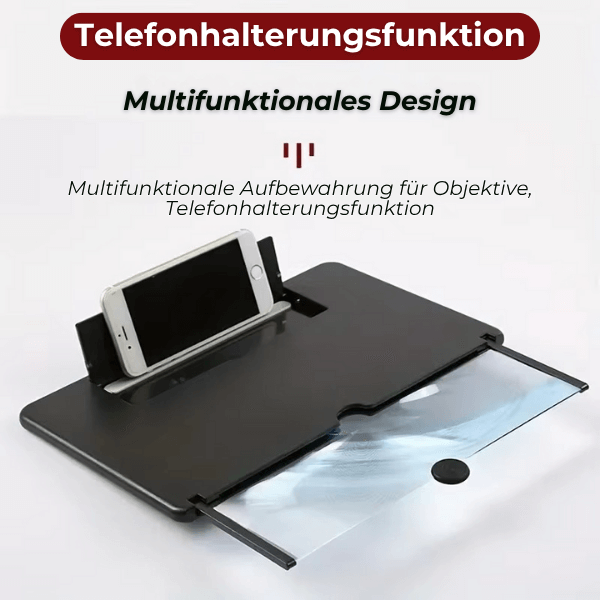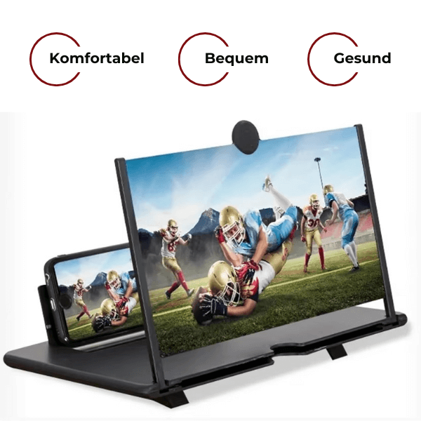 Der Vizora Handyverstärker vergrößert dein Smartphone-Bild um das 3–4-Fache und sorgt für ein gestochen scharfes, augenschonendes Seherlebnis. Dank Anti-Blaulicht-Technologie, faltbarem Design und universeller Kompatibilität ist Vizora dein perfekter Begleiter für Filme, Serien und Videos – überall und jederzeit.