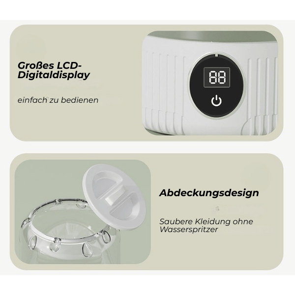 Die kabellose Mini-Waschmaschine ist dein praktischer Helfer für kleine Wäschestücke. Mit 3000 mAh Akku, kompakter Größe und sanfter, gründlicher Reinigung sorgt sie überall für Frische – egal ob zu Hause, auf Reisen oder beim Camping. Einfach Wasser einfüllen, starten und zurücklehnen.
